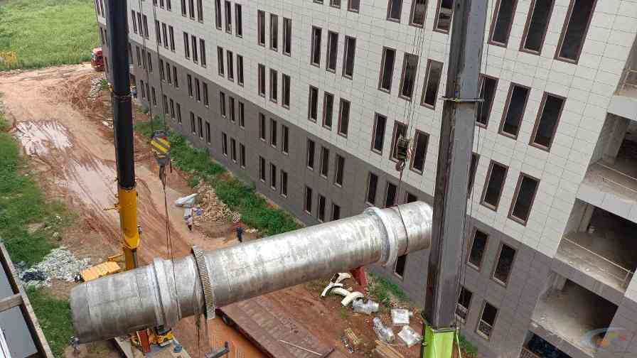 湖北中新开维食品有限公司投资建设的中新开维绿色食品产业园聚焦鲜食营养餐品生产,产品定位“新鲜、健康、安全、营养”的新中式餐品。目前,产业园项目建设正在稳步推进,全力冲刺投产目标。9月18日,中新开维绿色食品产业园项目迎来重大进展—随着三台总重达108吨的“巨无霸”回转窑炒菜锅在两台吊车精准牵引下缓缓上楼就位,中新开维绿色食品产业园15#食品生产楼正式进入鲜食营养餐生产线安装阶段。这一世界首创、全球规模最大的回转窑炒菜设备,由世纪新峰科技集团首席科学家诸葛文达亲自设计、江苏鹏飞集团定制生产,标志着我国新中式餐饮工业化进程迈出关键一步。