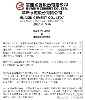 华新水泥10月8日晚间发布公告,公司董事会同意将公司中文名称由“华新水泥股份有限公司”变更为“华新建材集团股份有限公司”,公司A股证券简称由“华新水泥”变更为“华新建材”,公司A股证券代码600801保持不变。