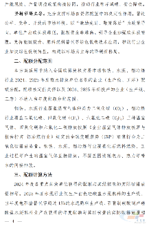 按照循序渐进、抓大放小原则,分阶段、有步骤推进配额分配工作,以主要排放企业和排放工序为重点,合理确定配额分配范围。与发电行业配额分配方式总体一致,2024、2025 年度配额实行免费分配,基于单位产出碳排放分配配额。充分发挥市场在资源配置中的决定性作用,营造公平、竞争、开放的市场环境,以“激励先进、鞭策落后”为政策导向,单位产出碳排放越低,配额盈余率越高。引导企业加强碳排放管理、降低碳排放,支持能效提升、原料燃料替代等绿色低碳技术应用。