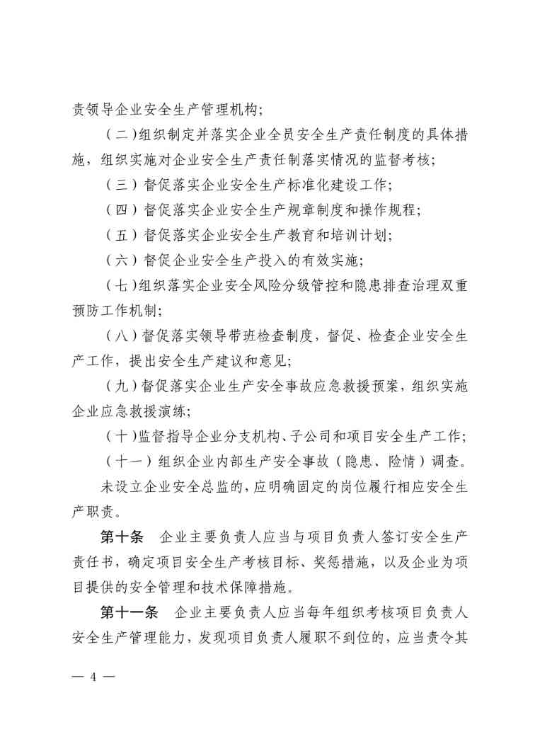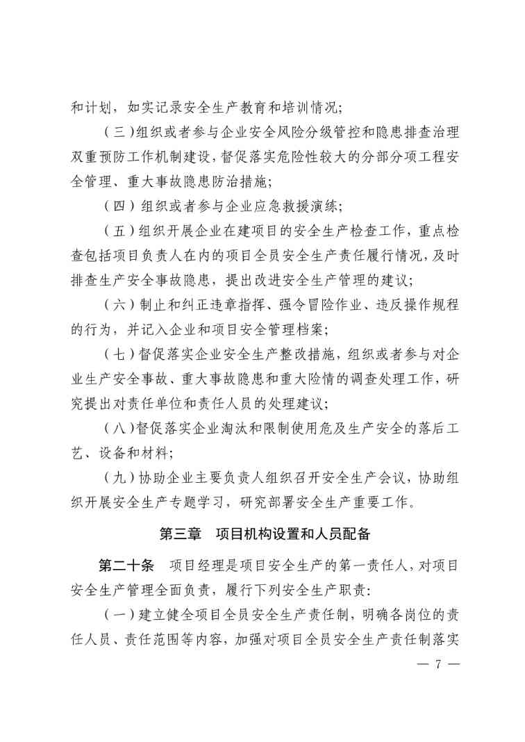 第二十条项目经理是项目安全生产的第一责任人,对项目 安全生产管理全面负责,履行9项安全生产职责(见正文部分)。