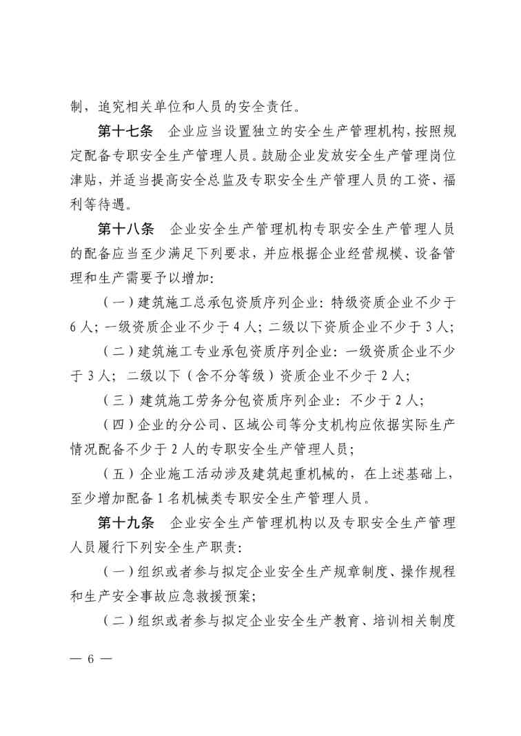 第十七条 企业应当设置独立的安全生产管理机构,按照规定配备专职安全生产管理人员。鼓励企业发放安全生产管理岗位津贴,并适当提高安全总监及专职安全生产管理人员的工资、福利等待遇。