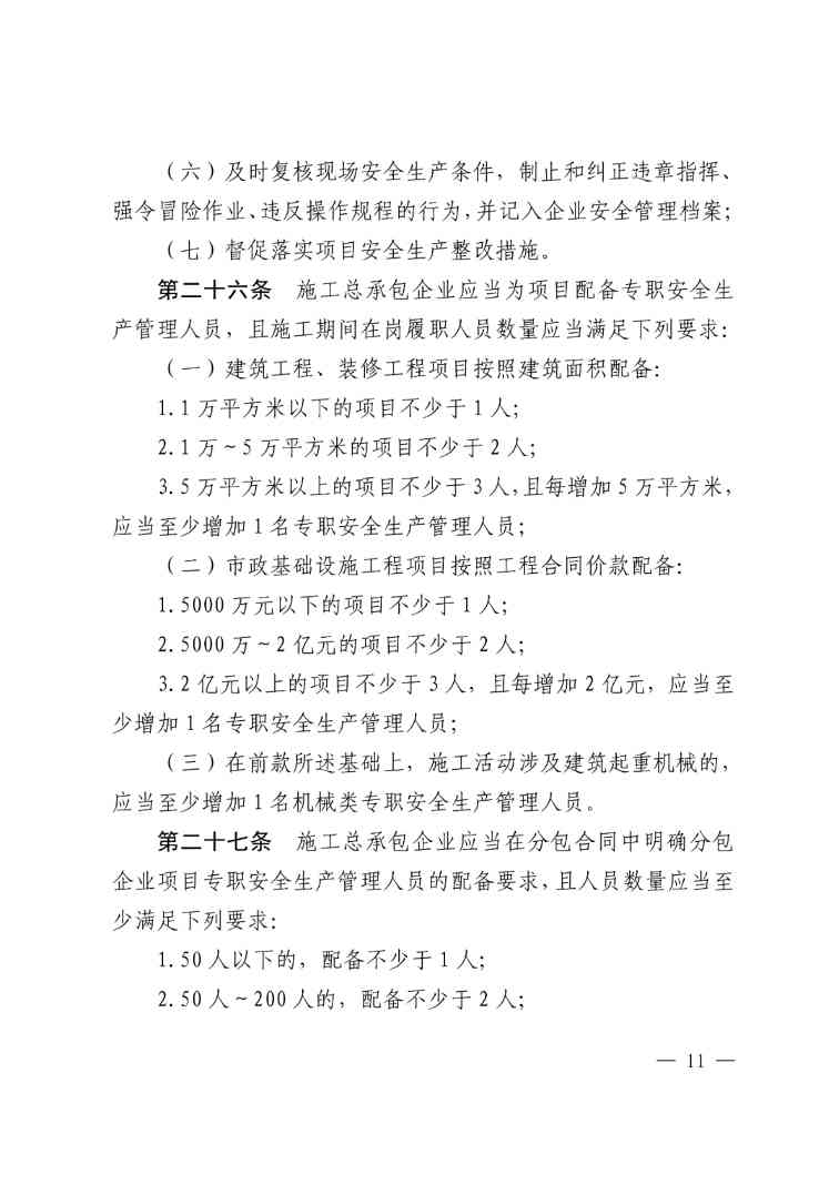 第二十一条明确建设规模符合3种条件之一的项目,应当配备安全总监,设置独立的安全生产管理机构。