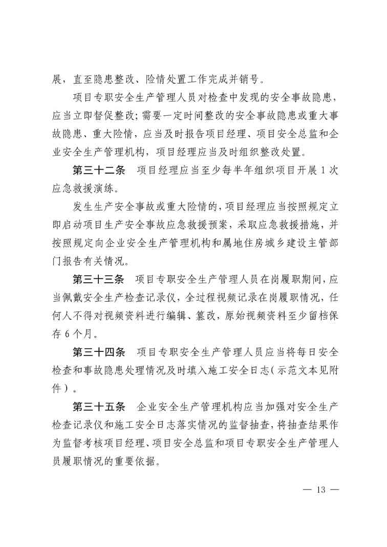 第三十三条 项目专职安全生产管理人员在岗履职期间,应当佩戴安全生产检查记录仪,全过程视频记录在岗履职情况,任何人不得对视频资料进行编辑、篡改,原始视频资料至少留档保存 6 个月。