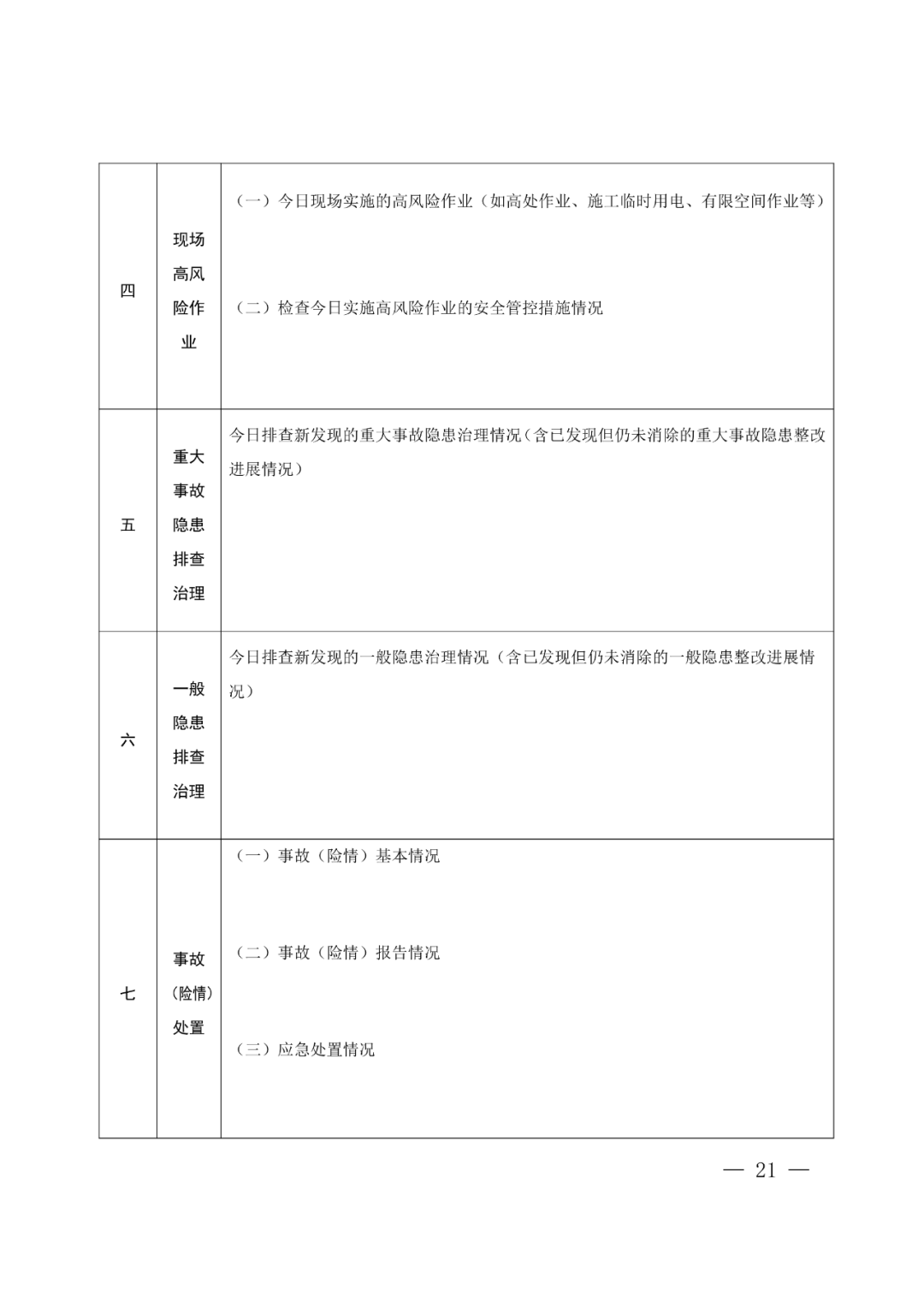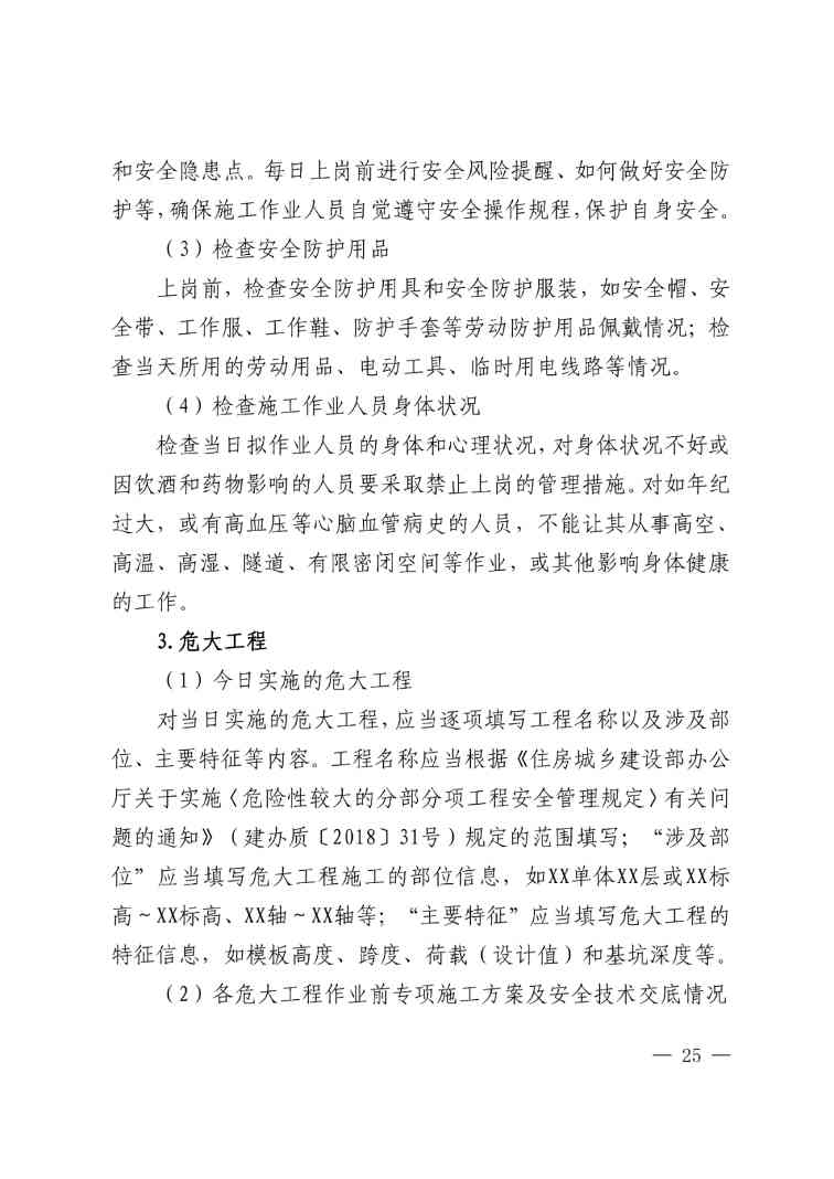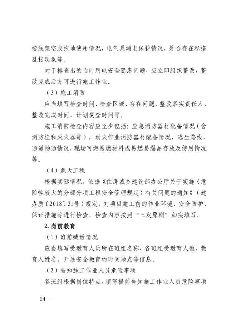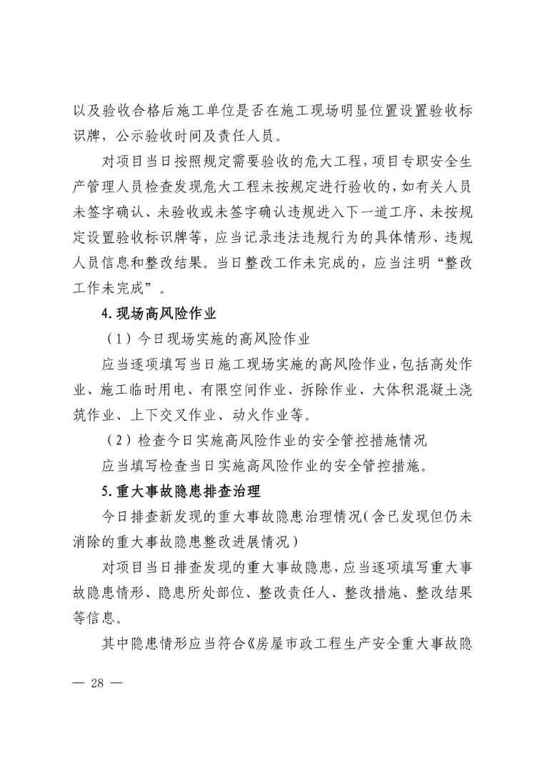 第三十四条 项目专职安全生产管理人员应当将每日安全检查和事故隐患处理情况及时填入施工安全日志(示范文本见附 件)。