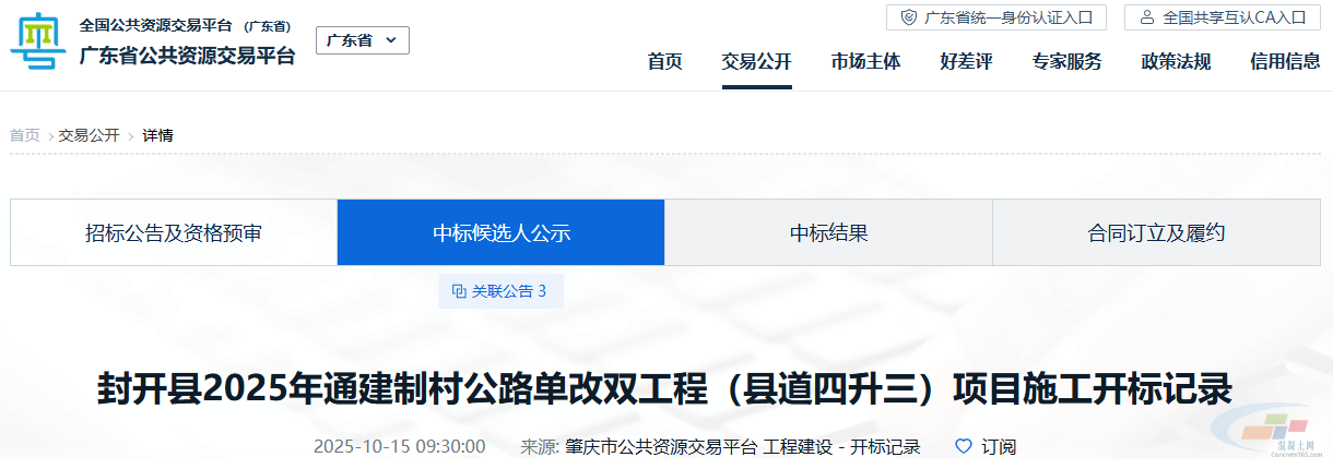 项目名称:封开县2025年通建制村公路单改双工程(县道四升三)项目施工