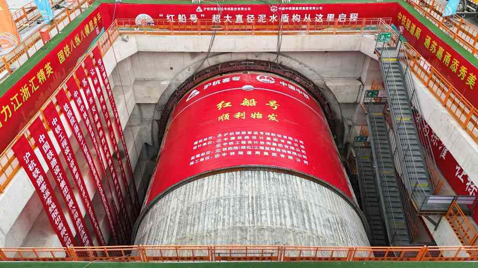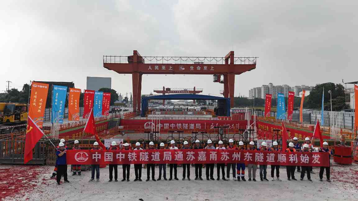 10月12日,国产超大直径泥水平衡盾构机“红船号”在新建南通至宁波高速铁路(简称通甬高铁)苏州东隧道顺利始发。