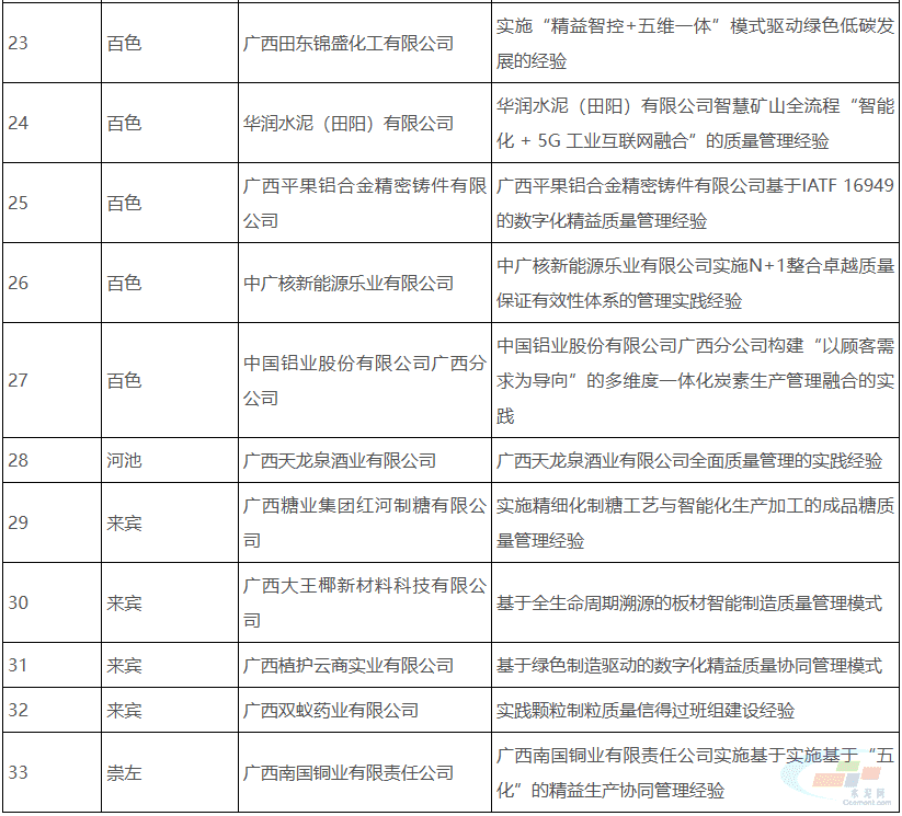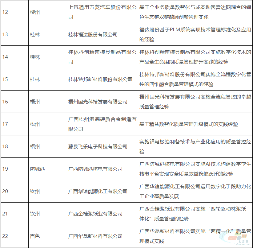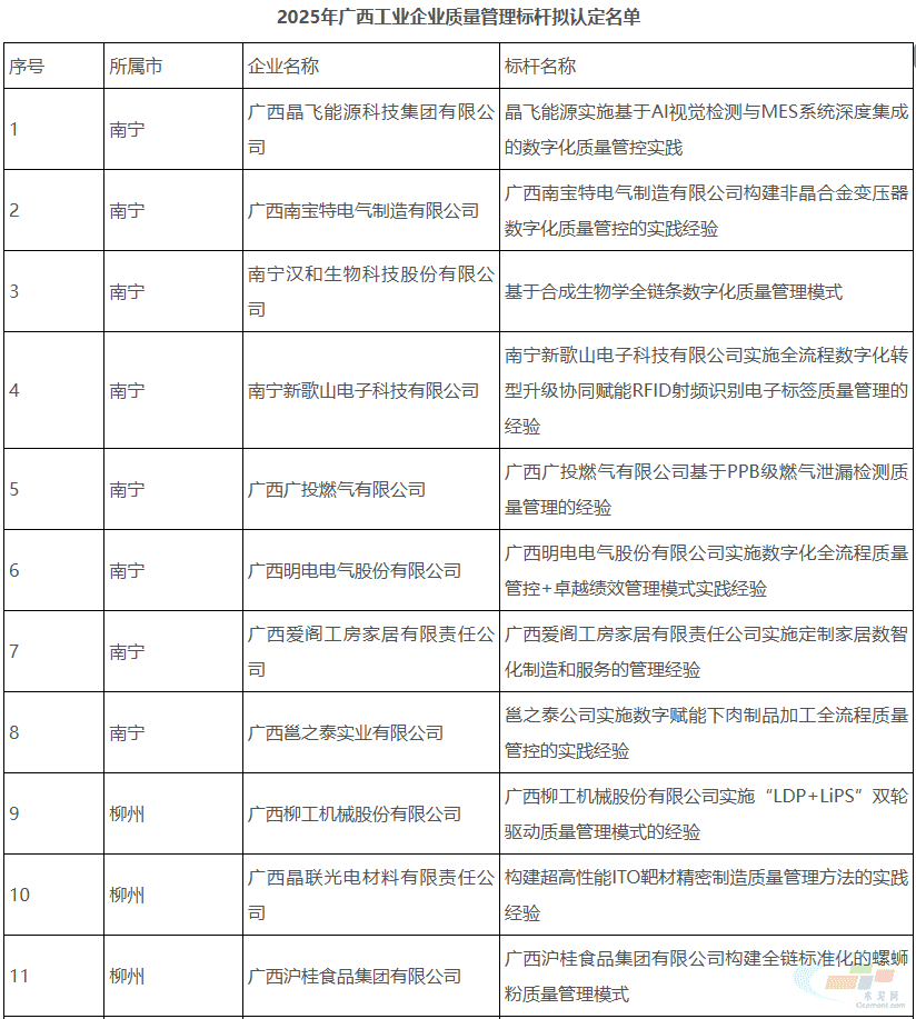 广西壮族自治区工业和信息化厅关于2025年广西工业企业质量管理标杆拟认定名单公示