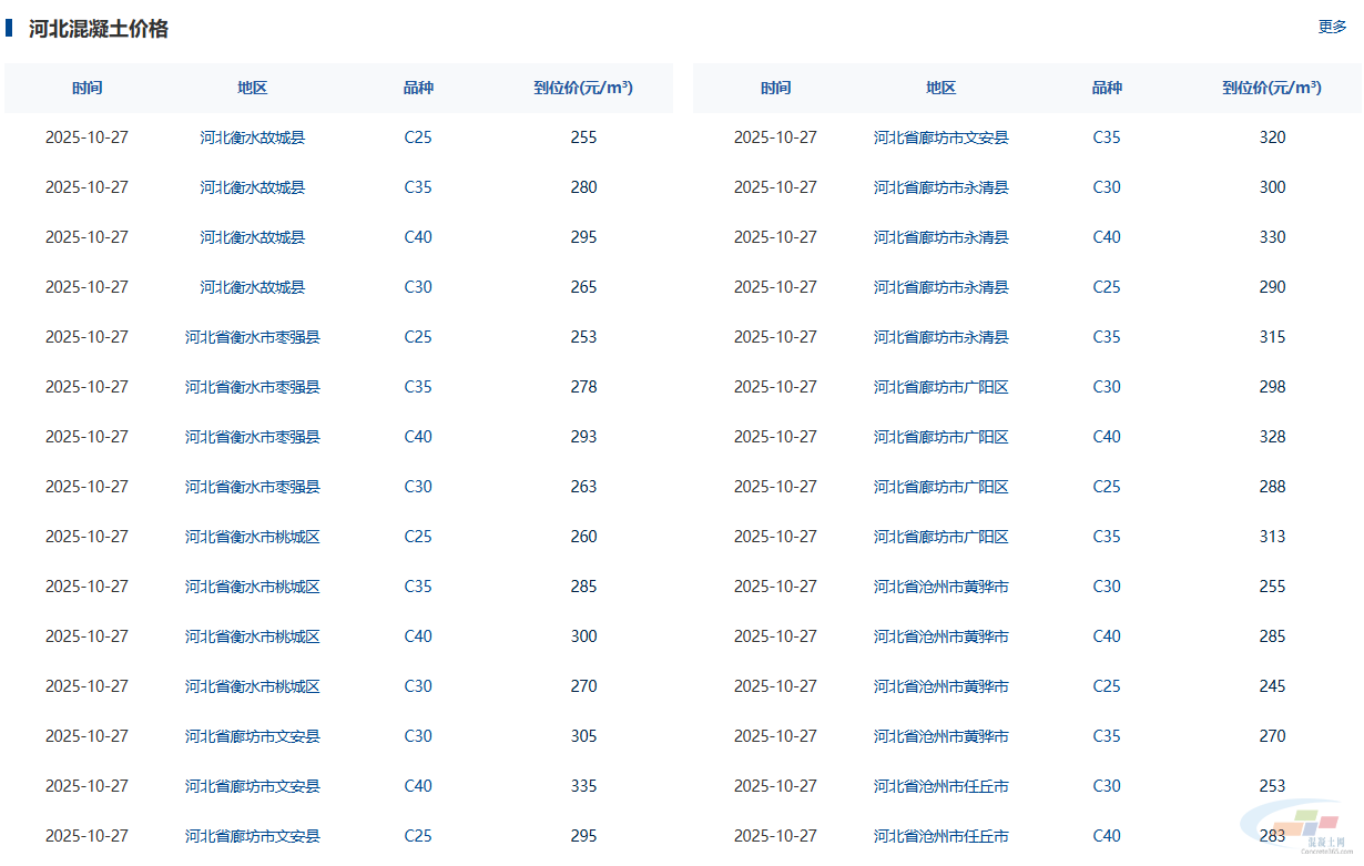 混凝土价格:张家口、保定、唐山...河北省热门城市 C30混凝土行情一览