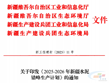 近日,新疆维吾尔自治区工信厅发布关于印发《2025-2026年新疆水泥错峰生产计划》的通知。