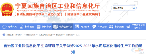 宁夏发布2025-2026年水泥常态化错峰生产工作通知