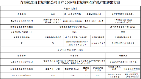 11月17日,青海省西宁市湟中区发展和改革局发布关于青海祁连山水泥有限公司产能置换方案的公告。
