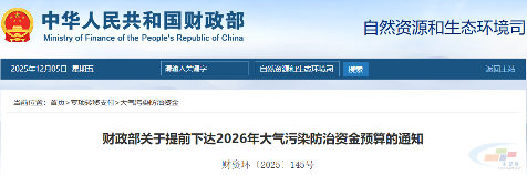 243.62亿元!财政部下达2026年大气污染防治资金预算
