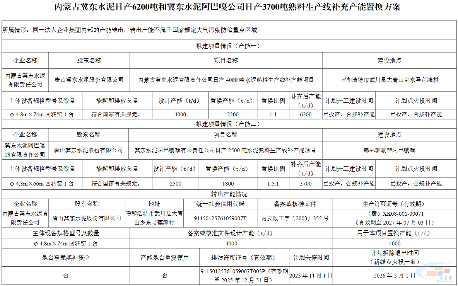 关于对内蒙古冀东水泥等公司水泥熟料生产线补充产能置换方案的公告
