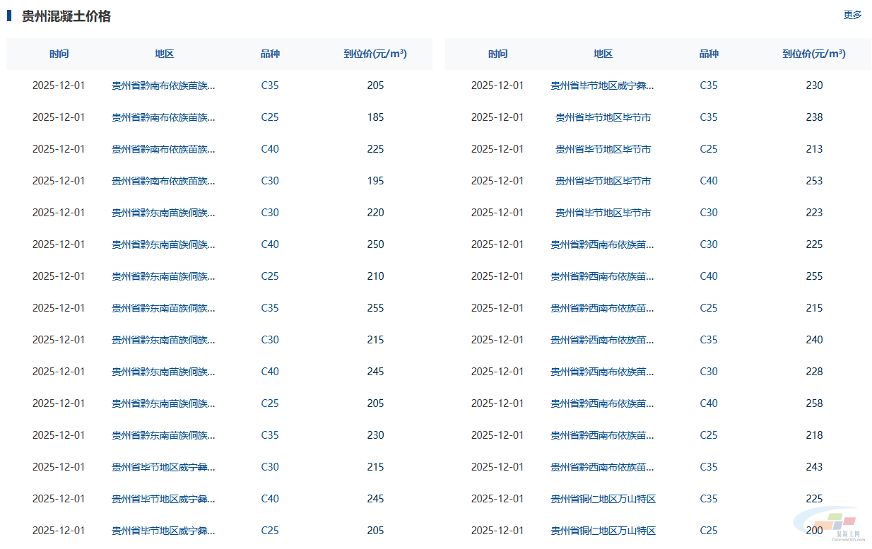 混凝土价格:贵州省热门城市 C30混凝土行情一览