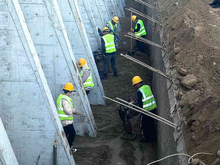 在混凝土施工环节,项目部筑牢“抗寒屏障”,浇筑前严控配比、添加防冻剂;浇筑时严控入模温度;浇筑后采用彩条布、保温毯与加热设备维持养护温度,确保混凝土强度达标。回填施工中,团队严选回填土原料,保温储备防冻结,严格控制铺土厚度与压实工艺,技术人员全程监督,压实度符合要求,施工间歇及时覆盖保温被,有力保障了施工质量与进度。