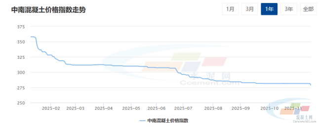 混凝土周报:中南地区需求未见起色,价格弱势运行(11.24-11.28)