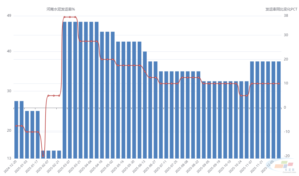 中国水泥网行情数据中心讯:据市场了解,由于错峰停窑的执行和环保政策的管控导致河南主导企业产能收缩。加上当地天气原因,下游需求逐渐回升,企业涨价意愿强烈,再次推动上调水泥20元/吨。