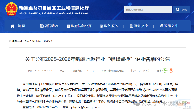 12月15日,新疆工信厅发布“关于公布2025-2026年新疆水泥行业“错峰置换”企业名单的公告”称,根据计划安排,新疆建材行业协会组织乌昌石吐塔区域电石渣水泥熟料生产企业与非电石渣水泥熟料生产企业沟通协调,开展水泥“错峰置换”工作。