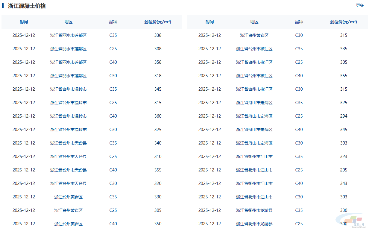 混凝土价格:丽水、衢州、绍兴...浙江省热门城市 C30混凝土行情一览