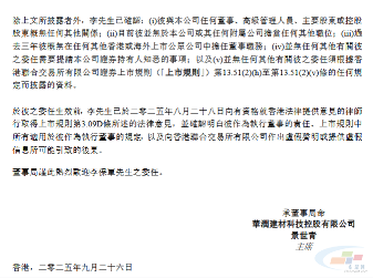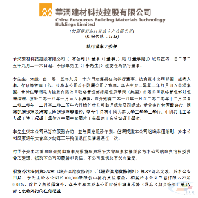近日,华润建材科技发布公告,自2025年9月26日起,李保军获委任为执行董事。