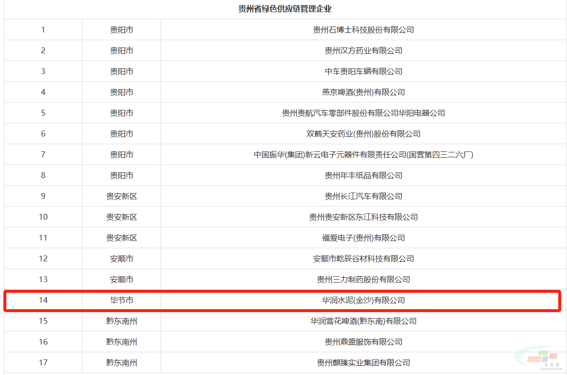 建材百科 华润建材科技下属企业拟入选贵州省绿色供应链管理企业 金峰建材 2026-03-26 2026-03-26 10月20日,贵州省工业和信息化厅发布《2025年度贵州省绿色制造名单的公示》,华润水泥(金沙)有限公司成功入选贵州省绿色供应链管理企业。 分享本文: 本文链接:https://860854.dajhao1.top/jiancaibaike/2201.html