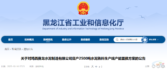 建材百科 鸡西赛龙水泥2500t/d熟料线产能置换方案公告 金峰建材 2026-03-27 2026-03-27 10月17日,黑龙江省工业和信息化厅发布关于鸡西赛龙水泥制造有限公司日产2500吨水泥熟料生产线产能置换方案的公告。 分享本文: 本文链接:https://860854.dajhao1.top/jiancaibaike/2293.html
