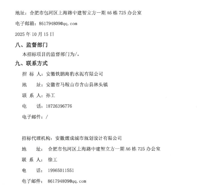 10月15日,安徽铁鹏海豹水泥有限公司日产2500吨水泥熟料生产线超低排放提标技术改造项目工程总承包招标公告发布,招标人为安徽铁鹏海豹水泥有限公司。