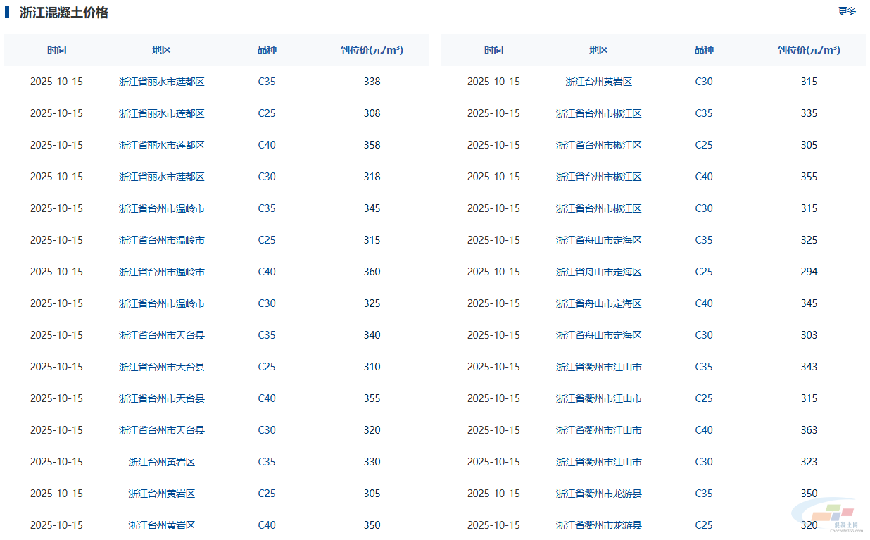 中国混凝土网行情通显示,2025年10月16日浙江省热门城市C30混凝土市场价格如下: