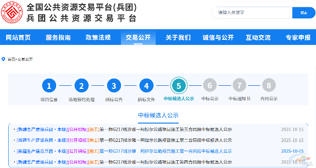第一师G217线沙雅—阿拉尔公路项目施工中标候选人公示