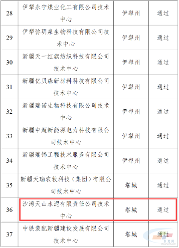 天山两家水泥企业拟入选自治区级企业技术中心