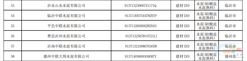 公示显示,水泥行业共有59家企业纳入名录,其中硅酸盐水泥企业58家,非硅酸盐水泥企业1家。