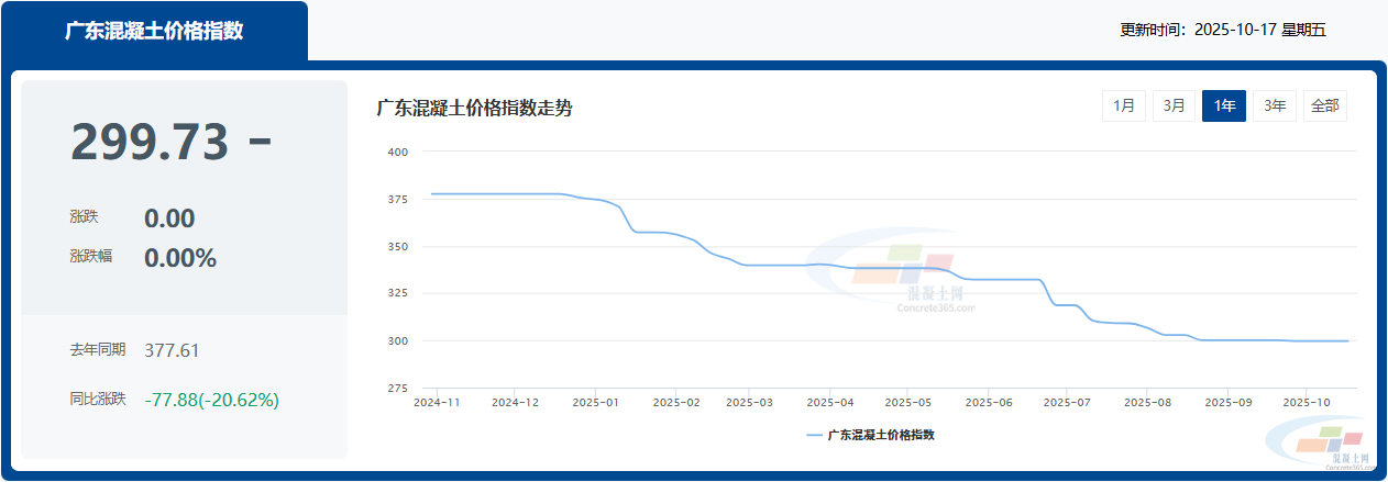 广东省内C30混凝土的市场价格区间在270元/方至335元/方之间,显示出一定的地区差异。