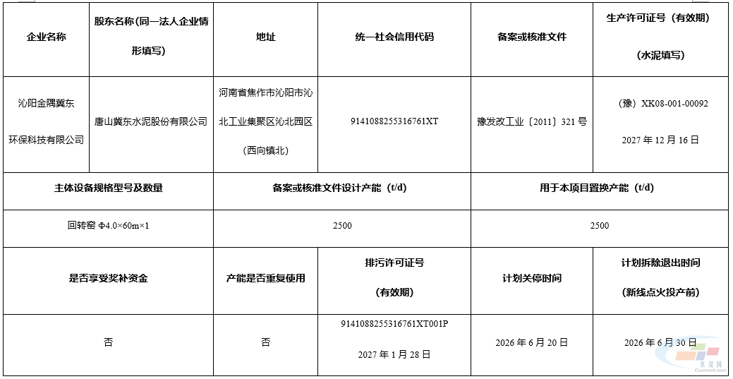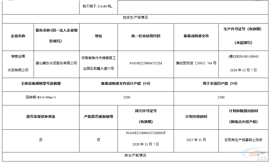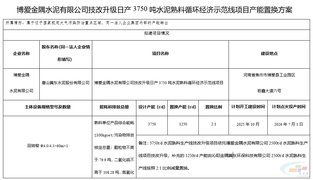 博爱金隅3750t/d 熟料线产能置换方案公告