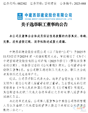 11月10日晚,西部建设发布关于选举职工董事的公告。