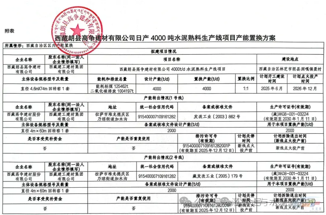 据悉,4月23日,西藏经信厅发布“关于西藏朗县高争建材有限公司4000t/d水泥熟料生产线项目产能置换方案的公示”。