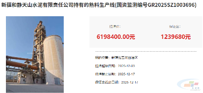近日,据相关产权交易平台信息显示,新疆和静天山水泥有限责任公司持有的熟料生产线相关资产进行转让,转让底价619.84万元。