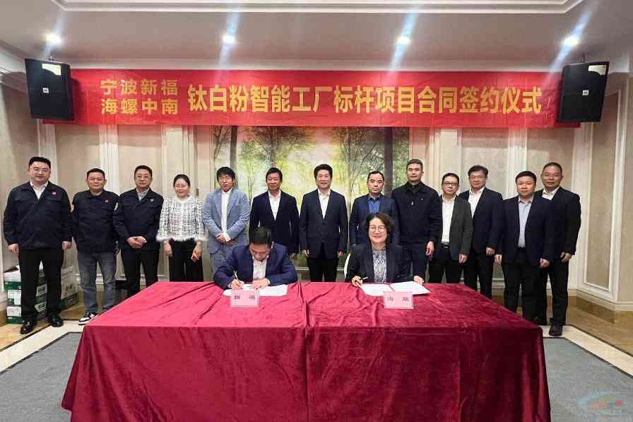 海螺中南-宁波新福“钛白粉智能工厂EPC项目”于2024年12月签订合作协议。该项目顺利完成合同签约对海螺中南未来赋能“千行百业”多场景创新实践和智能化产品跨行业规模化落地应用具有里程碑意义。
