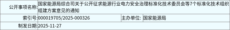 国家能源局综合司关于公开征求能源行业电力安全治理标准化技术委员会等7个标准化技术组织组建方案意见的通知