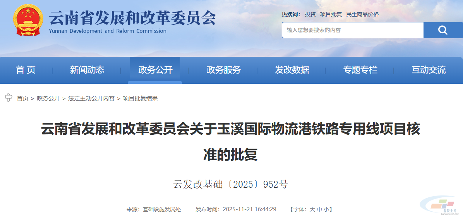 近日,云南省发展和改革委员会发布关于玉溪国际物流港铁路专用线项目核准的批复。