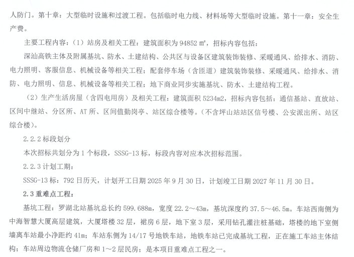 项目名称:新建深圳至深汕合作区铁路罗湖北站及相关工程施工总价承包